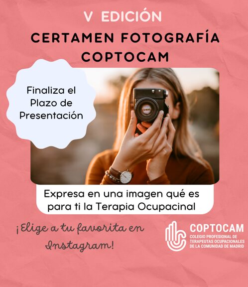 ¡Últimas horas! Este lunes 30 de junio a las 23:55h se cierra el plazo para enviar tus fotografías al V Concurso de Fotografía Digital COPTOCAM, una iniciativa que busca dar visibilidad a la Terapia Ocupacional a través de la creatividad y la imagen.