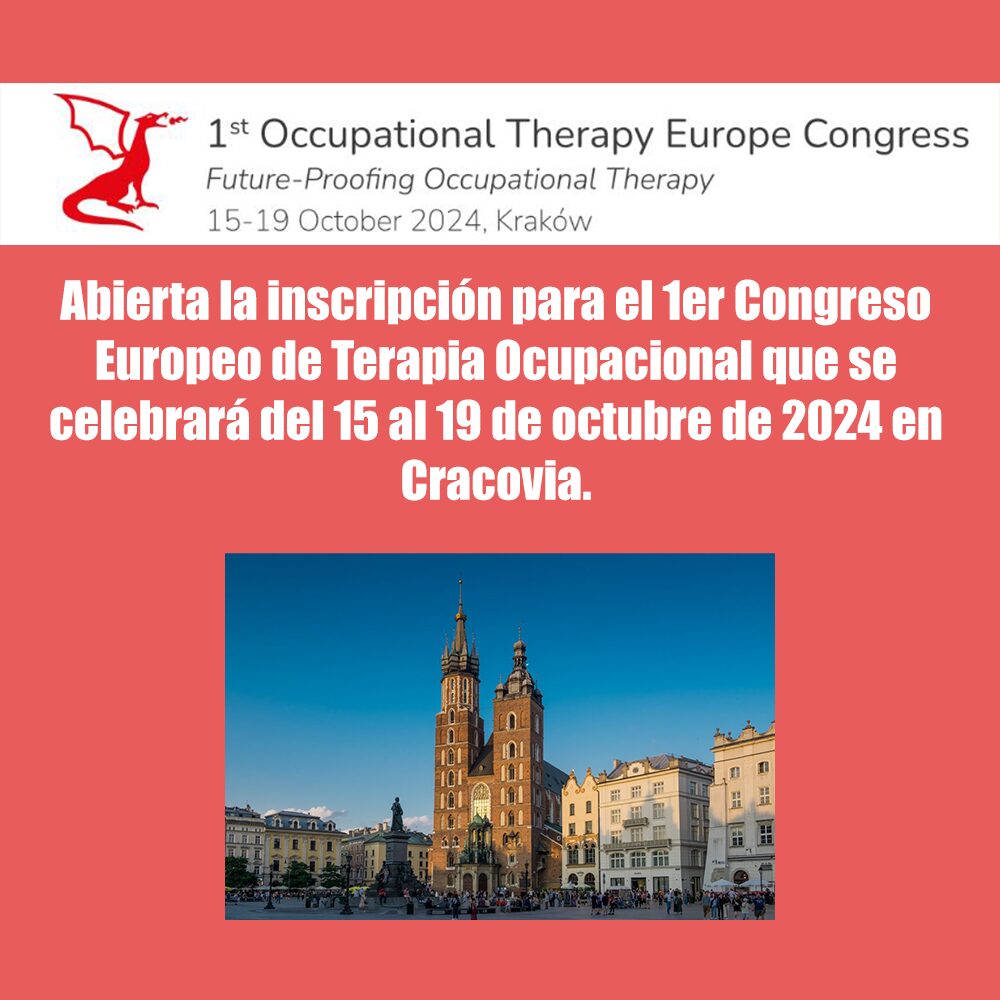 ¡Emociónate con el 1er Congreso Europeo de Terapia Ocupacional, del 15 al 19 de octubre de 2024! Coorganizado por la Asociación Polaca de Terapia Ocupacional y Terapia Ocupacional Europea, este evento unirá a las tres principales organizaciones europeas de terapia ocupacional: ENOTHE, COTEC y ROTOS.