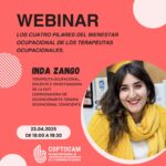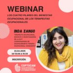 🔹 Ayer día 23 de abril de 2025 en COPTOCAM hemos compartido un webinar muy enriquecedora con Inda Zango: «Los cuatro pilares del bienestar ocupacional de los terapeutas ocupacionales». Reflexión, autocuidado y mucha inspiración 🙌 ¡Gracias por hacerlo posible! Ya tenéis disponible el vídeo de en el siguiente enlace: Webinar.