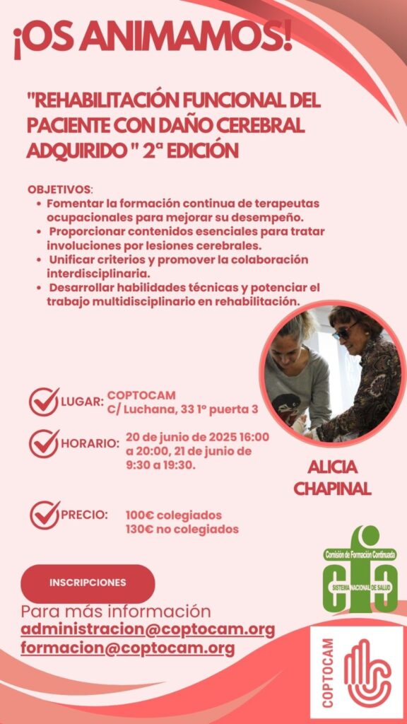 Nueva Formación COPTOCAM: «REHABILITACIÓN FUNCIONAL DEL PACIENTE CON DAÑO CEREBRAL ADQUIRIDO» 2ª Edición