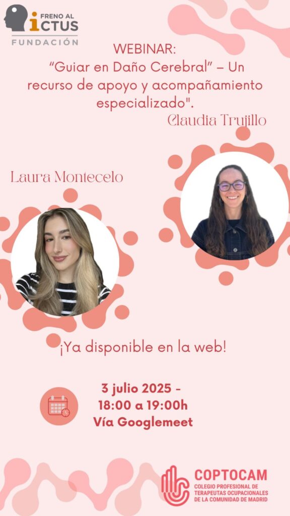 El pasado 3 de julio a las 18:00 horas, COPTOCAM, en colaboración con la Fundación Freno al Ictus, celebró el webinar “Guiar en Daño Cerebral: un recurso de apoyo y acompañamiento especializado”.
