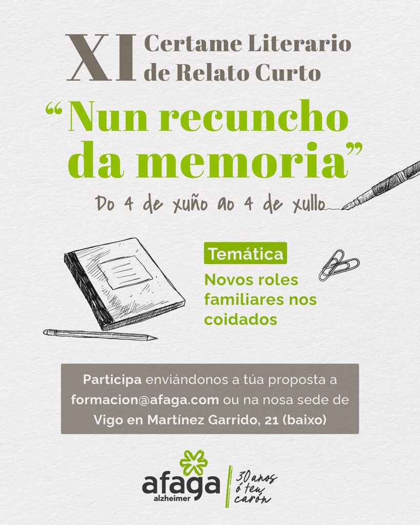 - Entrega de los relatos en: formacion@afaga.com o físicamente en nuestra sede de Vigo en Avenida Martínez Garrido, 21, Interior.
